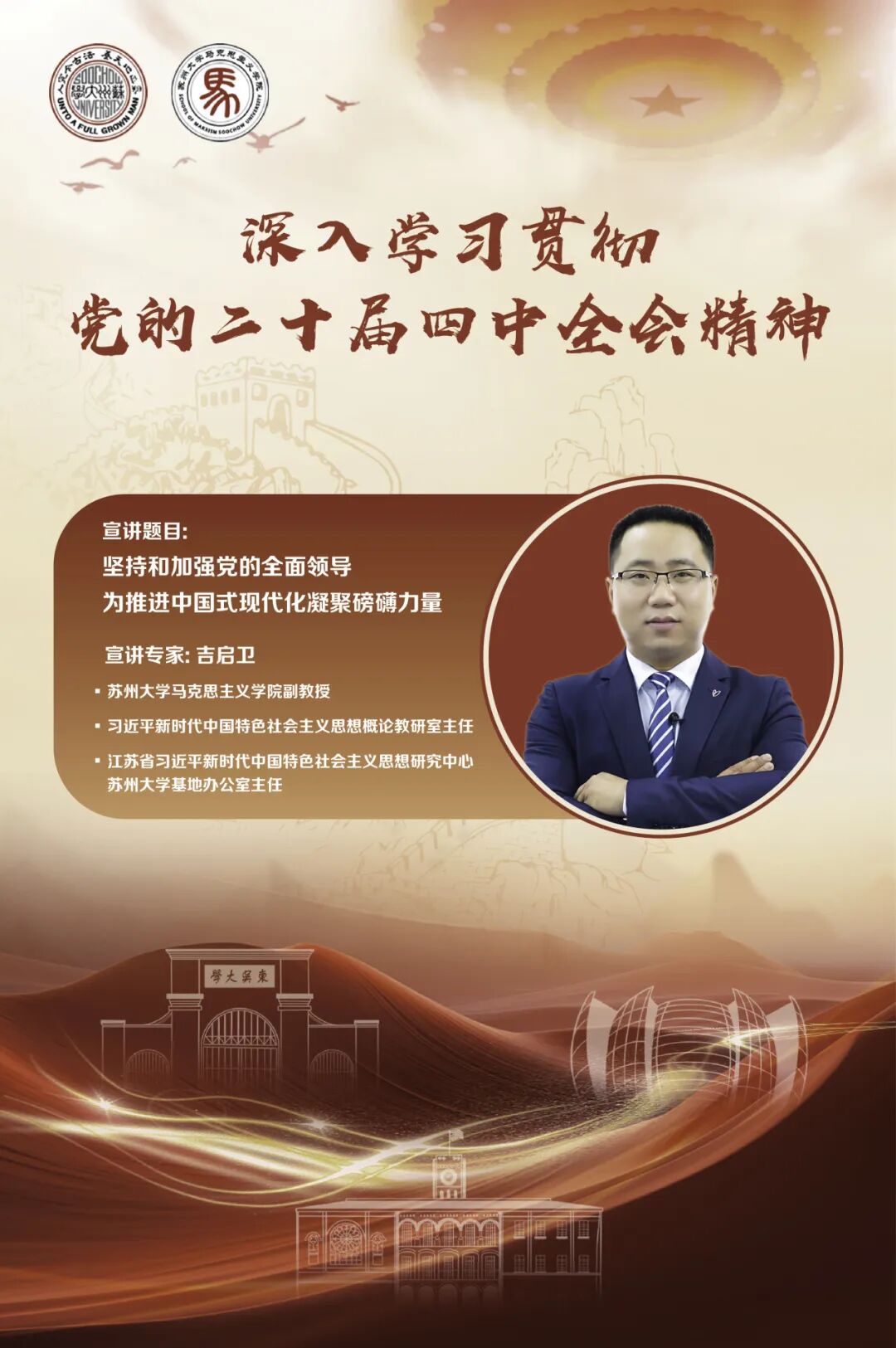 党的二十届四中全会是在我国即将胜利完成“十四五”主要目标任务,进入基本实现社会主义现代化夯实基础、全面发力的关键时期召开的一次重要会议。学习好贯彻好党的二十届四中全会精神,是当前和今后一个时期的重大政治任务。为有效发挥党员教师先锋模范作用,引导广大党员干部、师生切实把思想和行动统一到党中央决策部署上来,皇冠博彩 党委组建党的二十届四中全会精神宣讲团,面向校内外各级党组织开展专题宣讲服务。