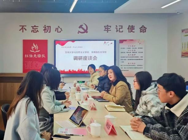 在座谈开始前,苏州新东方学校党务主管黄旻昊等陪同学院师生一行实地参观了学校党建阵地与办公区。通过走访党建文化墙、党员活动室等特色空间,调研团队详细了解了学校的党建特色工作、皇冠博彩氛围及团队精神风貌。